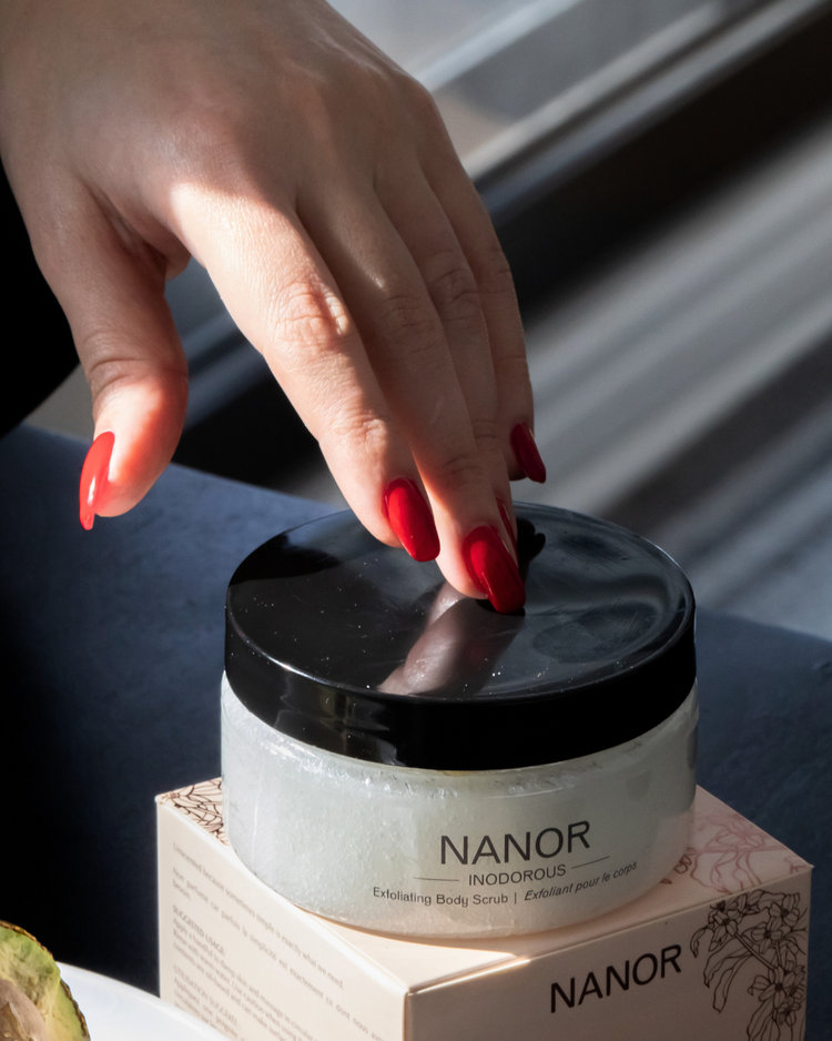 Heather O., Nanor Collection Customer"WOW! This scrub smells so sexy. Leaves my skin super soft and clean. Love this body scrub so much"