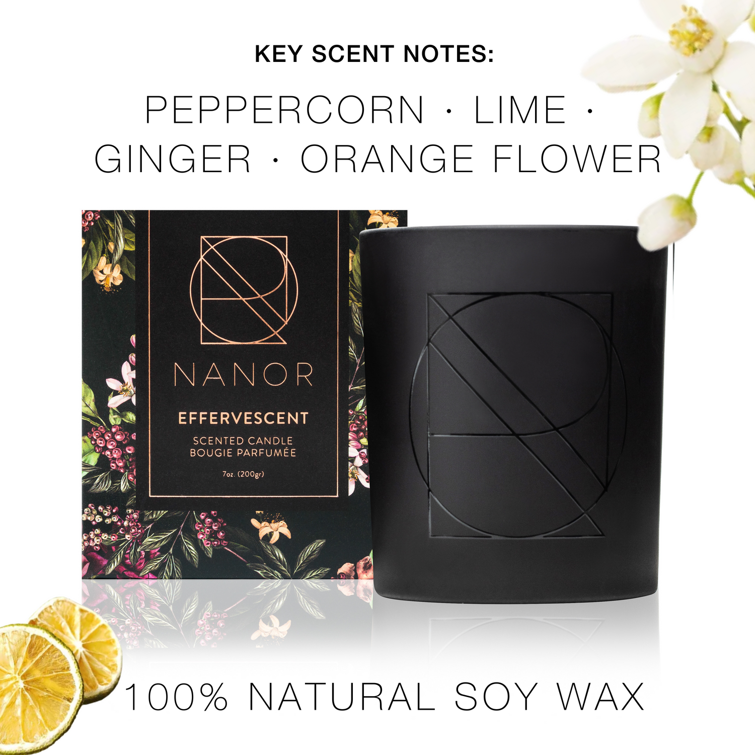 Like all of our candles, our EFFERVESCENT scented candle smells more natural than other candles because it is more natural: it’s made from soy wax. That also means it burns longer — and cleaner — than paraffin wax candles, so you can look forward to 30+ hours of joy in a jar.